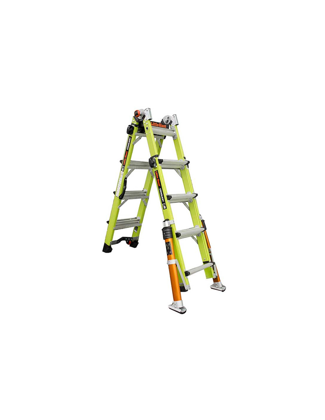 Escalera de fibra de vidrio transformable para trabajar en apoyo o en tijera, dispone de soportes para trabajar en columnas o en esquinas en ambas posiciones. Equipado con peldaño sonoro que avisa al operario de que ha llegado al final de la escalera, cuando este desciende de...