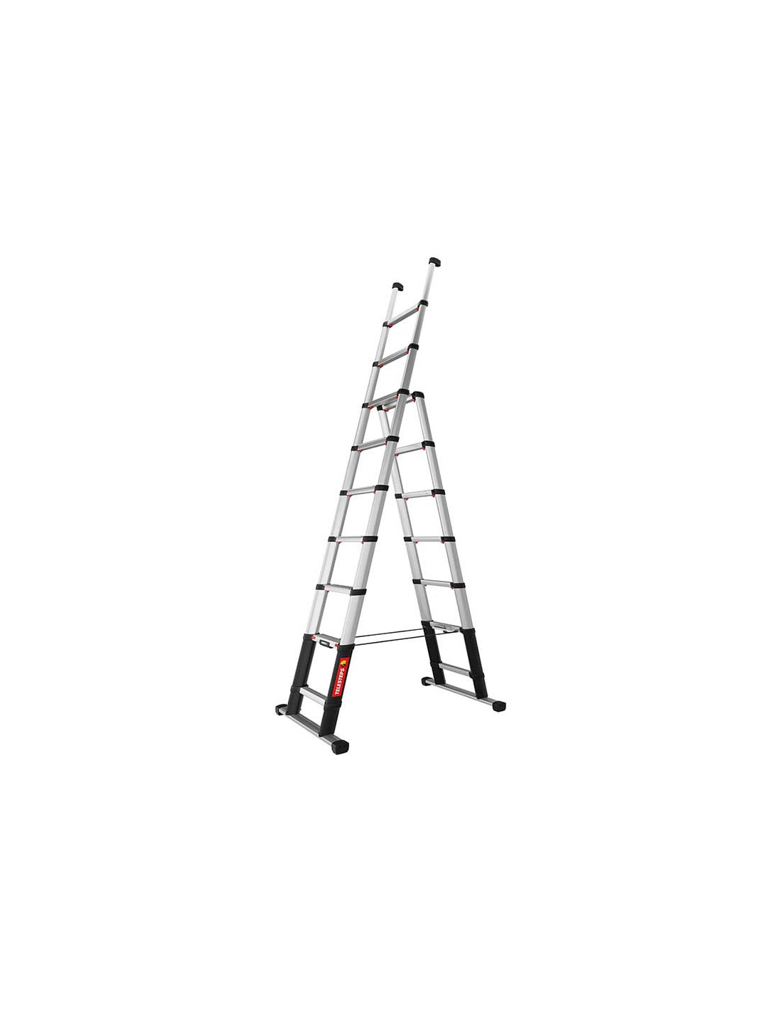Escalera telescópica ultracompacta de 2 tramos para trabajar en apoyo a pared o en tijera