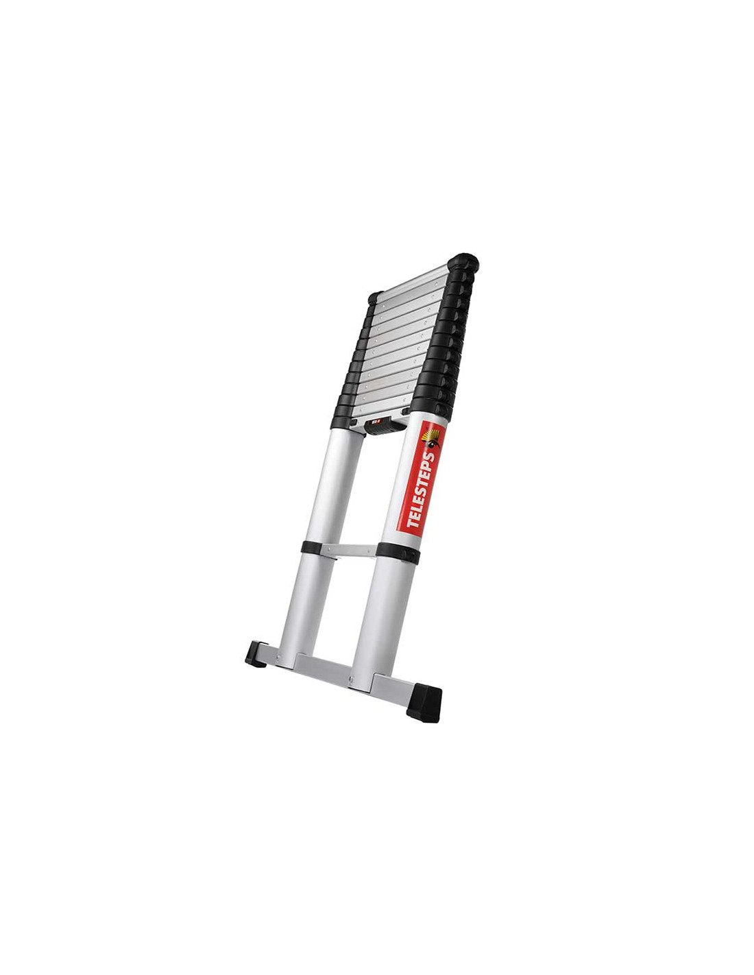 Escalera telescópica de un tramo fabricada en aluminio anodizado muy resistente y que no ensucia las manos. Adecuada para uso profesional y doméstico.